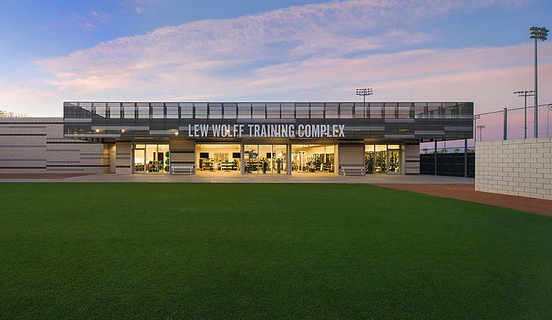 The Lew Wolff Training Complex is the Minor League Spring Training facility for the Oakland Athletics, located at Fitch Park in Mesa, Arizona. The complex underwent a $26.9 million renovation completed in 2015, expanding the main training building to nearly 56,000 square feet. It features extensive, rebuilt fields, strength training, and player therapy areas. The complex is a state-of-the-art facility designed to develop minor league talent and is used year-round, serving as the sister site to the main Hohokam Stadium.